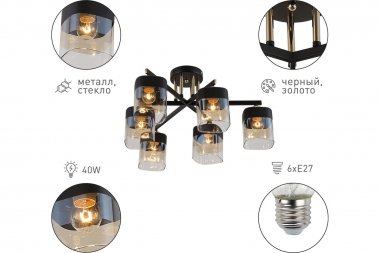 Эра Б0054753 Люстра Rivoli Isadora 9133-306 6 х Е27 40 Вт