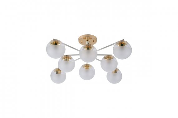 Люстра Rivoli Umbra 3129-308 8 х Е27 40 Вт модерн Umbra Rivoli (арт. 3129-308) - современная люстра в стиле модерн, люстра в гостиную в бело-золотой гамме. Количество плафонов - 8 (люстры с 8 плафонами / люстры под 8 ламп). Круглые компактные плафоны поделены на 2 части - прозрачный верх и матовый низ. Матовое стекло люстры отлично рассеивает свет и устраняет блики, прозрачное обеспечивает отличную подсветку потолка, делая комнату визуально просторнее и светлее. Находиться в комнате, где установлены люстры потолочные Umbra от европейского бренда Rivoli, приятно комфортно. Света этой люстры хватает для качественного освещения площади до 24 м2. Люстры Umbra Rivoli прекрасное решение на потолок современной квартиры. Если вы ищете люстры в спальню, люстры на кухню, спешите купить Rivoli Umbra. Корпус люстры изготовлен из металла со стойким гальваническим окрашиванием. В коллекции Umbra Rivoli представлены также люстры потолочные под 12 ламп (арт. 3129-312), современные люстры под 6 ламп (арт. 3129-306).