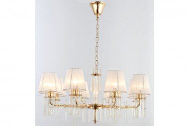 Люстра Rivoli Lilith 1039-308 8 х Е14 40 Вт хрусталь Rivoli Lilith - большая подвесная люстра в стиле современная классика. Итальянская коллекция Lilith Rivoli, в которую входят люстры потолочные под 6 и 8 ламп (арт. 1039-306, 1039-308) и настенное бра (арт. 1039-401), изготовлена из высококачественного легкого металла и декорирована удлиненными стеклянными колбами. Цвет люстры Lilith - французское золото - теплый и уютный. Лаконичные формы арматуры подходят для современных интерьеров, стремящихся к минимализму. Плафоны люстры из прочной прозрачной ткани хорошо пропускают свет. Люстры на потолок Rivoli Lilith c 8 плафонами освещают площадь до 24 м2. Люстры под 8 ламп Е14 40 Вт подойдут для основного освещения гостиной, спальни, детской, кабинета, квартиры-студии. Декоративные элементы отличаются выверенной формой, простотой и высокой прозрачностью под хрусталь. Люстры в спальню Lilith Rivoli помогут создать интерьер в классическом стиле, в замковом стиле, в стиле модерн, эклектика. Идеальны для загородного дома, холла гостиниц, ресторанов.