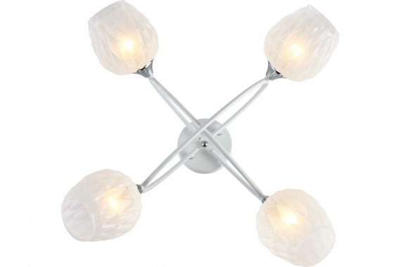 Люстра Rivoli Hettie 3136-304 4 х Е27 60 Вт модерн Rivoli Hettie (арт. 3136-304) - люстры итальянского дизайна, отличающиеся оригинальной металлической арматурой и фигурными плафонами из белого матового стекла. Овальные перекрестные держатели плафонов окрашены в базовый белый цвет, универсальный для любых интерьеров. Люстры потолочные Hettie Rivoli выполнены в стиле модерн. Стеклянные плафоны в классической форме бутонов имеют объемный рисунок с ромбами. Люстры Hettie освещают 12 м2. Эти стильные светлые люстры с 4 белыми матовыми плафонами хороши для кухни, коридора, прихожей, небольшой спальни или детской комнаты. Дизайнерские люстры на кухню Rivoli Hettie устойчивы к выцветанию и образованию царапин, сколов благодаря гальваническому покрытию корпуса. Четыре плафона с закаленным стеклом также обеспечивают долгий срок службы люстры. Коллекцию Hettie европейского бренда Rivoli дополняют люстры потолочные под 6 ламп - арт. 3136-306. Рекомендуемые источники света для современной люстры коллекции Hettie - Е27 60 Вт.