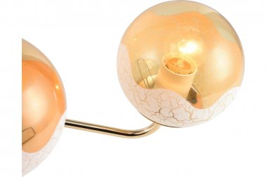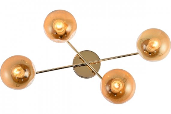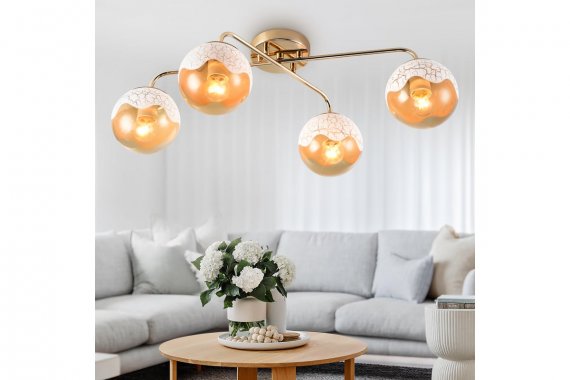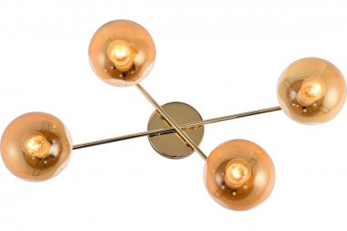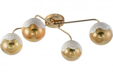 Люстра Rivoli Avril 3140-304 4 х Е27 60 Вт модерн Rivoli Avril - люстра на кухню, люстра в небольшую гостиную, люстра в маленькую спальню. Создана итальянскими дизайнерами бренда Rivoli, предлагающим стильные европейские люстры по доступной цене. Люстры коллекции Avril Rivoli выполнены в золотом цвете. Круглые стеклянные плафоны люстры в верхней части декорированы покрытием с эффектом кракле. Люстры Avril выполнены в стиле модерн и станут яркой деталью интерьера. Данная люстра с 4 золотыми плафонами освещает 12 м2. С современными люстрами Rivoli Avril применяются лампы Е27 60 Вт. Металлический корпус люстры Avril представлен как совокупность двух геометричных линий с мягкими изгибами у мест крепления плафонов. Яркие с стильные, при этом аккуратные и компактные, современные люстры Rivoli Avril хороши к покупке для квартиры после ремонта, для новоселья. Круглые плафоны - традиционное беспроигрышное решение для люстры. Коллекцию Avril Rivoli составляют дизайнерские люстры под 4 лампы (арт. 3140-304) и под 6 ламп (арт. 3140-306).