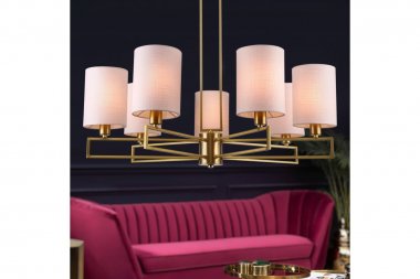 Люстра Rivoli Hilda 2061-307 7 х Е14 40 Вт классика Потолочные люстры Rivoli Hilda (арт. 2061-307) в классическом стиле. Абажур элегантного бежевого цвета изготовлен из прочной интерьерной ткани, которая не выцветет со временем и не потемнеет. Эти люстры прекрасная покупка, которая продемонстрирует ваш замечательный вкус и будет радовать долгие годы. Арматура дизайнерской люстры на потолок Hilda от итальянского бренда Rivoli представлена в благородном цвете латунь. Люстра Rivoli Hilda идеально подойдет также и на натяжной потолок. Лампы для люстры в спальню или люстры в гостиную Hilda нужно купить Е14 мощностью 40 Вт. Коллекция укомплектована люстрой на 5 ламп (2061-305) и бра (2083-401).