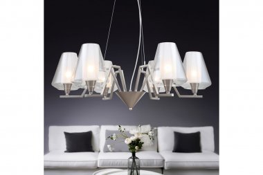 Люстра Rivoli Angela 2065-306 6 х Е14 40 Вт классика Rivoli Angela – коллекция классических люстр под лампы Е14 40 Вт. Коллекция дополнена классическим бра – арт. 2065-401. Артикулы, чтобы найти люстры подвесные Rivoli Angela: арт. 2065-306 – люстры с 6 плафонами, арт. 2065-308 – люстры с 8 плафонами. Плафоны из прозрачного стекла напоминают бокалы под шампанское. Люстры Angela итальянского бренда Rivoli отличают минималистичные точёные линии, что придаёт им геометричность, свойственную современным интерьерам. Посмотрите фото люстры Rivoli Angela, чтобы удачно купить люстру для стилей современная классика, минимализм, классика, восточный, модерн. Арматура цвета никель сатин смотрится в пространстве легко и отвечает трендам дизайна интерьеров. Подвесные люстры Angela Rivoli предусматривают регулировку высоты при монтаже люстры на потолок.