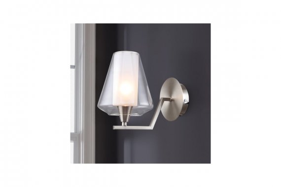 Бра светильник Rivoli Angela 2065-401 настенный 1 х Е14 40 Вт классика Rivoli Angela - минималистичные настенные бра в цвете никель сатин от итальянского бренда Rivoli. Бра настенные Angela отличает эффектный двойной плафон из стекла. Геометричная арматура данного бра хорошо подходит для современных интерьеров. Стеклянный двухчастный плафон выглядит оригинально и качественно рассеивает свет. Заказать Rivoli Angela можно в спальню, в гостиную, на кухню, в кабинет. С помощью этого универсального бра на стену легко организовать дополнительную подсветку перед сном, для чтения или создания уютной атмосферы. Покрытие арматуры бра Angela Rivoli – стойкое гальваническое. На таком светильнике даже спустя годы использования не появятся царапины и сколы.
