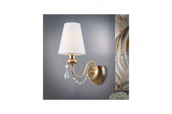 Бра светильник Rivoli Becky 2066-401 настенный 1 х Е14 40 Вт классика Итальянский бренд Rivoli представляет классические светильники с декором из хрусталя: Rivoli Becky (арт. 2066-401) с окрашиванием в цвет французское золото и Rivoli Beatrix (арт. 2067-401) с окрашиванием в цвет античная бронза. В бра Rivoli Becky хрустальную подвеску дополняют бусы из хрусталя. Небольшой тканевый абажур традиционной формы мягко рассеет свет и создаст уютную атмосферу. Настенные светильники Rivoli успешно применяются для организации дополнительной подсветки или зонирования пространства. Стоит купить настенный светильник Rivoli Becky в качестве бра над кроватью, бра на стену у прикроватной тумбочки, бра около обеденного стола или бра у зеркала. В данный настенный светильник подходит лампа Е14 40 Вт.