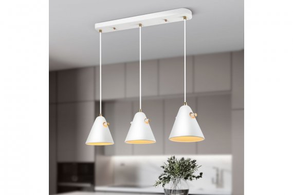 Светильник подвесной (подвес) Rivoli Chelsea 3141-203 3 х Е14 40 Вт модерн потолочный Металлический подвесной светильник Rivoli Chelsea (арт. 3141-203) с 3 белыми плафонами на тросах. При монтаже светильника на потолок можно выбрать нужную высоту подвесов. Плафон подвесного светильника-люстры Chelsea изготовлен из легкого и прочного металла. Благодаря гальванизации в базовый белый цвет светильники потолочные подвесные Chelsea Rivoli выглядят невесомо, аккуратно и являются универсальным решением для любого интерьера. Итальянские дизайнеры создали эти подвесные светильники на тросах в популярном стиле модерн. Подвесные светильники над столом Chelsea Rivoli удачно заказать для пространств в стиле модерн, минимализм, индастриал, скандинавский. Коллекция укомплектована подвесом под 1 лампу (3141-201), бра под 1 лампу (арт. 3141-401), люстрами под 6 и 8 ламп (артикулы 3141-306 и 3141-308).