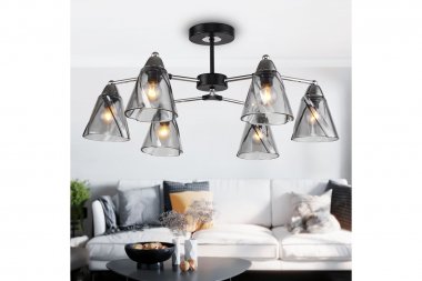 Люстра Rivoli Connie 3144-306 6 х Е14 40 Вт модерн Металлическая потолочная люстра на штанге, выполненная в стиле модерн, станет удачным решением для преображения современной квартиры, дома, общественного пространства. Потолочная люстра с 6 стеклянными плафонами с лёгким затемнением осветит площадь до 18 м2. При этом свет люстры не будет слишком ярким для глаз. Плафоны люстры изготовлены из стекла и радуют аккуратным выдувным декором. Черный корпус люстры дополнен элементами цвета хром. Коллекция Connie итальянского бренда Rivoli – это потолочные люстры: арт. 3144-306 – с 6 стеклянными плафонами, арт. 3144-308 – с 8 плафонами из стекла. А также бра настенное – арт. 3144-401.