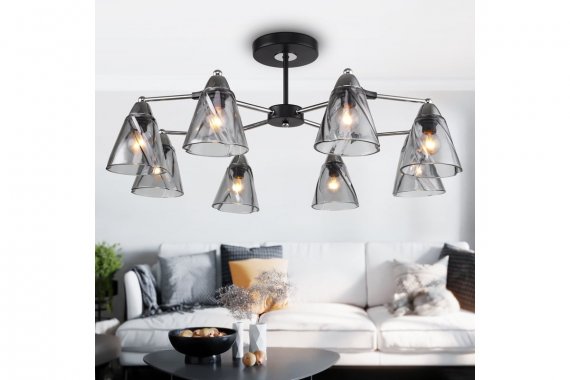 Люстра Rivoli Connie 3144-308 8 х Е14 40 Вт модерн Люстра потолочная на металлической штанге Rivoli Connie осветит площадь до 24 м2. Люстры с 8 плафонами стоит купить для просторных жилых помещений. Стеклянные плафоны потолочной люстры Connie отличаются лёгкой дымчатой тонировкой и аккуратным выдувным декором. Свет полупрозрачных плафонов люстры направлен вниз, тонированная люстра на потолок смягчает освещение, делая его комфортным. Качественное стекло этой современной люстры и её прочный металлический корпус делают Rivoli Connie выгодным товаром, который можно заказать для себя или в подарок. Rivoli Connie – дизайнерская коллекция, состоящая из люстры под 8 ламп (арт. 3144-308), люстры под 6 ламп (арт. 3144-308), бра (арт. 3144-401).