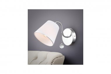 Бра светильник Rivoli Betsy 2069-401 настенный 1 х Е14 40 Вт классика Rivoli Betsy (арт. 2069-401) – классический интерьерный светильник от итальянских дизайнеров. Бра декорировано хрустальной подвеской. Белый тканевый абажур бра напоминает цветочный бутон. Свет бра направлен вниз, что делает этот настенный светильник прекрасным вариантом дополнительной подсветки для чтения, рукоделия, приёма пищи, подготовки ко сну. Металлический корпус данного бра на стену лаконичен и окрашен в трендовый цвет хром. Благодаря хромированию светильник настенный в классическом стиле смотрится актуально в современных интерьерах. Бра Rivoli Betsy применяется с лампочкой Е14 40 Вт и освещает площадь 3 м2. Посмотрите фото другого классического бра с хрустальным декором, представленного в ассортименте Rivoli – арт. 2068-401, Rivoli Bet.