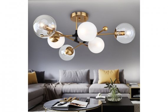 Люстра Rivoli Darlene 3145-306 6 х Е14 40 Вт модерн Люстра на штанге потолочная, латунного цвета, выполнена в стиле модерн. Люстра Rivoli Darlene (арт. 3145-306) – дизайнерская, её оформление создано в Италии в соответствии с самыми последними трендами дизайна интерьеров. Минималистичные латунные рожки люстры представлены в формате перекрёстных реек. 6 круглых плафонов изготовлены из разного стекла: 3 плафона – прозрачные, 3 плафона – матовые. Люстра потолочная латунная Rivoli Darlene применяется с лампами Е14 мощностью 40 Вт. При использовании всех источников света качественно осветит площадь до 18 м2. Дополняет коллекцию люстра Rivoli Darlene под 8 ламп (арт. 3145-308) и настенное бра под 2 лампы (арт. 3145-402).
