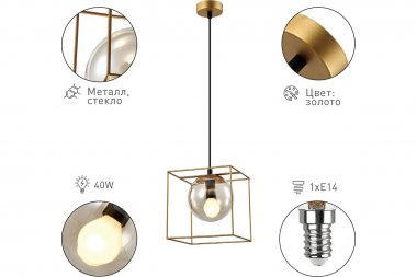 Светильник подвесной (подвес) Rivoli Miyuki 5146-210 1 х Е14 40 Вт золото лофт - кантри потолочный Rivoli Miyuki (арт. 5146-210) - подвесной светильник на тросе, высота которого регулируется при установке. Miyuki Rivoli создан итальянскими дизайнерами для интерьеров в стиле лофт-кантри, однако прекрасно подходит и для пространств в стиле модерн, минимализм, эклектика, лофт, винтаж. Подвесные светильники на тросах Rivoli Miyuki - это лаконичный круглый плафон из стекла, сочетающийся с геометричным каркасом в виде куба золотого цвета. Подвесные светильники над столом Miyuki не перегружают комнату, выглядят аккуратно, при этом становятся стильным акцентом интерьера. Для зонирования пространства, подсветки обеденного или рабочего стола, организации дополнительного освещения эти подвесные светильники для кухни, подвесные светильники в гостиную, подвесные светильники в спальню - идеальный вариант. Купить подвесные светильники Rivoli Miyuki - простое и удачное решение для квартиры после ремонта, для новой квартиры, для обновления интерьера.