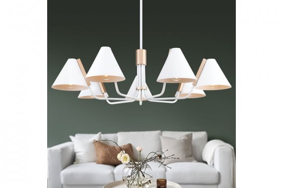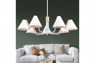 Люстра Rivoli Beverly 2070-307 7 х Е14 40 Вт лофт - кантри Потолочная люстра Rivoli Beverly (арт. 2070-307) в стиле лофт-кантри изготовлена из металла с гальваническим стойким окрашиванием в белый цвет, имеет декоративные элементы красивого золотого оттенка. Люстры потолочные Beverly от итальянского бренда Rivoli применяются с 7 лампами Е14 мощностью 40 Вт, подходят экономичные светодиодные лампочки. Для качественного и яркого света в помещении площадью до 21 м2 рекомендуем вкрутить все 7 источников света. Потолочные люстры Rivoli Beverly идеальны для организации основного освещения в гостиной, спальне или на кухне. Часто эти минималистичные люстры покупают на потолок квартиры-студии. Такие аккуратные дизайнерские люстры универсальны для большинства пространств и помогут удачно оформить квартиру после ремонта. В коллекции вы найдёте также настенный светильник Rivoli Beverly (арт. 2070-401) и люстру под 5 ламп (арт. 2070-305).