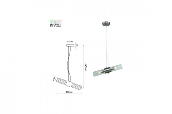 Светильник подвесной (подвес) Rivoli Delia 3146-201 2 х Е14 40 Вт модерн потолочный Подвесной светильник Rivoli Delia под 2 лампы Е14 40 Вт. Рекомендуемая колба лампочек для данного подвеса – свеча. Оригинальный стеклянный светильник на тросе поможет оформить интерьер в стиле модерн, классика, современная классика, минимализм. Высоту троса можно отрегулировать, когда светильник подвесной будет монтироваться на потолок. Потолочные подвесные светильники – настоящий тренд современного дизайна интерьеров. Коллекция Delia – дизайнерская, включает в себя: бра под 2 лампы (арт. 3146-402), подвесной светильник под 2 лампы (арт. 3146-201), люстры под 12 ламп (арт. 3146-312), люстры под 16 ламп (арт. 3146-316).