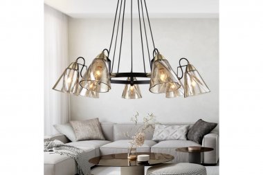 Люстра Rivoli Cathy 5106-307 7 х Е14 40 Вт лофт - кантри Подвесные люстры Rivoli Cathy подходят для стилей лофт-кантри, современная классика, классика. Люстры на тросах популярны для создания эффектных запоминающихся интерьеров. Высоту подвеса люстры на потолок Cathy легко отрегулировать при монтаже и подключении люстры. В коллекции Rivoli Cathy, созданной итальянскими дизайнерами, люстры под 7 ламп (арт. 5106-307) и люстры под 5 ламп (арт. 5106-305), а также настенный светильник – арт. 5106-401. Лаконичный металлический обруч люстры подвесной Cathy Rivoli объединяет 7 фигурных стеклянных плафонов с тёплой тонировкой. Смягчая блики и направляя свет вниз, люстры потолочные Cathy создают комфортное для глаз освещение. Рекомендуем купить люстры Rivoli Cathy c 7 плафонами в гостиную площадью до 21 м2. Эти люстры подвесные на тросах отлично подойдут в загородный дом.