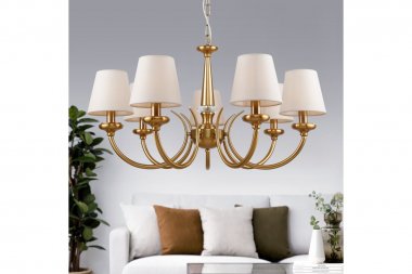 Люстра Rivoli Carissa 2073-307 7 х Е14 40 Вт классика Rivoli Carissa (арт. 2073-307) 7-рожковая классическая люстра для освещения больших пространств. Люстры Carissa со светлыми тканевыми абажурами создают мягкое уютное освещение. Если вам нужно купить люстры потолочные с комфортным для глаз светом, вы на правильном пути. Посмотрите фото всей коллекции Carissa от итальянского бренда Rivoli: арт. 2073-305 – люстры подвесные под 5 ламп, арт. 2073-401 – настенное бра в классическом стиле. Ткань плафонов люстры Carissa является абажурной – прекрасно пропускает свет, не накапливает грязь и пыль, выглядит естественно и гармонизирует интерьер. Подвесные люстры Rivoli Carissa удачно подходят для организации основного освещения в гостиной, в просторной спальне, в загородном доме.