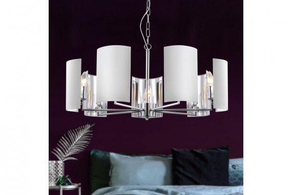 Люстра Rivoli Asura 2076-307 7 х Е14 40 Вт классика Хромированная минималистичная люстра в стиле современная классика. Люстра потолочная Rivoli Asura (арт. 2076-307) подходит для просторных помещений – применяется с 7 лампами Е14 40 Вт. Для экономии электричества можно установить светодиодные лампочки. В коллекции Rivoli Asura есть аналогичная люстра подвесная под 5 ламп (арт. 2076-305). Коллекцию дополняет бра (арт. 2076-401) и настольный светильник (арт. 7076-501). Люстры потолочные подвесные Rivoli Asura отличаются лаконичностью форм арматуры. Подвес наполовину состоит из цепочки, убирая звенья которой, можно регулировать высоту люстры. Прямоугольные плафоны обтянуты специальной тканью, устойчивой к выцветанию и загрязнениям. Лампы расположены по кругу, что даёт помещению много света.