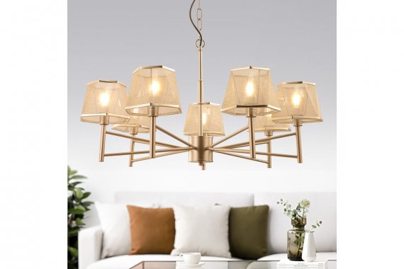 Люстра Rivoli Edna 2082-307 7 х Е14 40 Вт классика 7-рожковая люстра в золотом цвете с тканевыми плафонами – Rivoli Edna (арт. 2082-307). Большая яркая люстра на потолок подходит для основного освещения пространств площадью до 21 м2. Декоративная ткань золотистого оттенка прекрасно пропускает свет, при этом смягчая освещение. Источники света люстры расположены по кругу, что позволяет равномерно распределить световые потоки ламп. Подвесная люстра Edna Rivoli применяется с лампочками Е14 мощностью 40 Вт. Для экономии электричества можно купить в данную люстру потолочную светодиодные лампочки LED. Если вам нужна люстра поменьше, рассмотрите люстру Rivoli Edna под 5 ламп – арт. 2082-305. Для организации дополнительного освещения рекомендуем бра настенные Rivoli Edna – арт. 2082-401. Люстры дизайнерские Edna имеют возможность регулировки высоты подвеса.