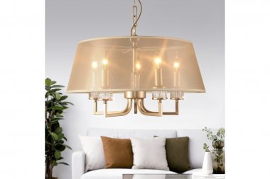 Люстра Rivoli Elinor 2083-310 5 х Е14 40 Вт классика Потолочные люстры Rivoli Elinor (арт. 2083-310) классические светильники с благородными деталями. Абажур красивого золотистого цвета изготовлен из прочной интерьерной ткани, которая не выцветет со временем. Эти люстры прекрасная покупка, которая продемонстрирует ваш замечательный вкус и будет радовать долгие годы. Позолоченная арматура потолочной люстры Elinor от итальянского бренда Rivoli декорирована вставками из стекла. Идеально подойдет также и на натяжной потолок. Лампа для люстры в спальню или в гостиную Elinor - Е14 40 Вт. Коллекция укомплектована люстрой на 5 и 7 ламп (2083-305, 2083-307), настольным светильником (7083-501) и бра (2083-401).