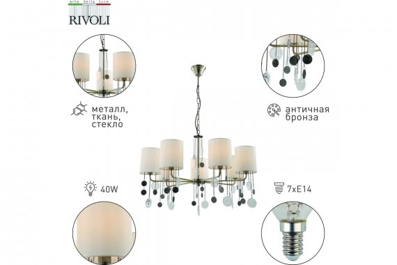 Технические характеристики Rivoli Ellie 2085307 классика 7 х Е14 40 Вт Б0055634