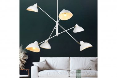 Люстра Rivoli Hattie 4102-306 6 х Е14 40 Вт дизайн Белая металлическая люстра на штанге - Rivoli Hattie (арт. 4102-306). Металлические козырьковые плафоны люстры расположены на разной высоте, что обеспечивает более широкое заполнение комнаты светом. Количество плафонов – 6. Рекомендованные источники света – Е14 40 Вт. Люстра с металлическими плафонами выполнена в чёрном цвете. Над козырьками плафонов – миниатюрные декоративные элементы в цвете медь. В ассортименте итальянского бренда Rivoli есть аналогичная потолочная люстра в белом цвете – Rivoli Adelaide (арт. 4103-306). Трендовая минималистичная люстра с плафонами в виде ретро фонарей – идеальный вариант для интерьеров в стиле лофт или в скандинавском стиле. Рожки люстры представлены в виде перекрёстных металлических прутьев.