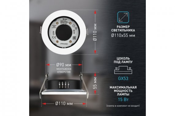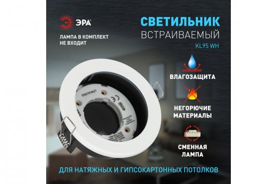 Эра Б0055809 Встраиваемый светильник влагозащищенный KL95 WH GX53 IP44