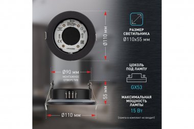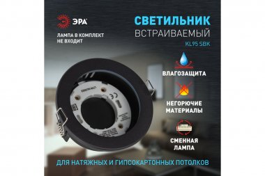 Эра Б0055812 Встраиваемый светильник влагозащищенный KL95 SBK GX53 IP44