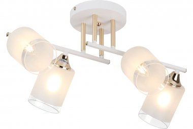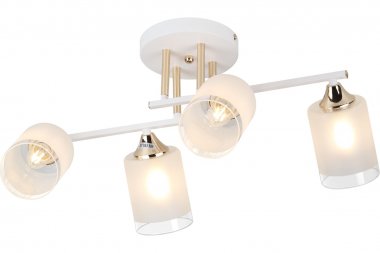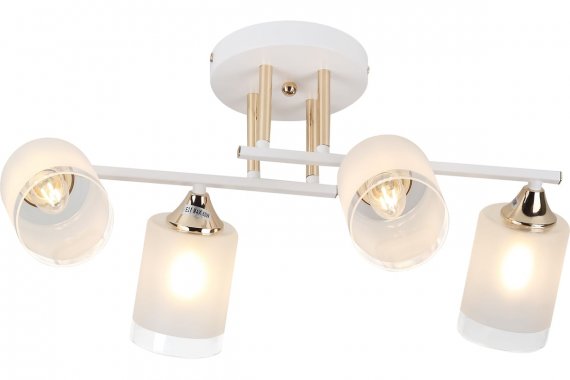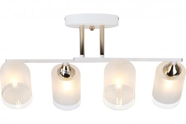 Люстра Rivoli Georgiana 9144-203 4 х Е27 60 Вт модерн Rivoli Georgiana (арт. 9144-203) – люстра потолочная на штанге с реечными рожками и 4 стеклянными плафонами. Люстра дизайнерская выполнена из металла и окрашена гальваническим способом в белый цвет с золотистыми деталями. Плафоны люстры «смотрят» в разные стороны, что позволяет охватить светом как можно больше пространства комнаты. Люстра на потолок Georgiana от итальянского бренда Rivoli качественно осветит площадь до 12 м2 и прекрасно будет смотреться в роли люстры на кухню, люстры в прихожую, люстры в небольшую гостиную, люстры в спальню, люстры в кабинет. Коллекцию дополняет люстра под 6 ламп – арт. 9144-205.