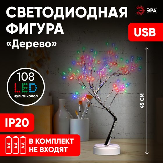 Светодиодная новогодняя фигура ЭРА ЕGNID - 36MC Дерево с самоцветами 36 microLED Светодиодный декоративный светильник ЭРА ЕGNID - 36MC "Дерево с самоцветами" с 36 миниатюрными светодиодами microLED. Прекрасное решение купить такой LED-светильник как новогодний светильник, новогодний ночник, новогодний подарок, праздничный декор на стол, новогодний декор на полку, новогодний декор в офис. Микросветодиоды - настоящий тренд в области декоративного освещения. Настольное светящееся дерево ЭРА высотой 45 см красиво светится разными цветами, microLED-лампочки украшают элегантные тонкие ветви с серебристым покрытием. Современный декоративный светильник ЭРА "Дерево с самоцветами" на сенсорном управлении - удобная кнопка включения располагается на лаконичной подставке. Два типа питания: 3 батарейки АА или подзарядка от USB-кабеля. Светящееся LED-дерево - прекрасный подарок к любому празднику. Это уникальная новинка на российском рынке!