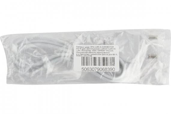 Сетевой шнур ЭРА LLED-А-CONNECTOR KIT-W для светильников LLED-01/LLED-02/LLED-01-Х-E, длина 1 м Сетевой шнур для линейных светодиодных светильников LLED-01,LLED-02 и LLED-01-Х-E.