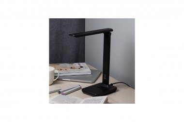 Настольный светильник ЭРА NLED-500-10W-BK со светодиодами (LED) в качестве источников света в дизайне "под кожу". Удобная складная модель с сенсорным управлением, возможностью выбора цветовой температуры и плавным диммером для регулировки яркости.