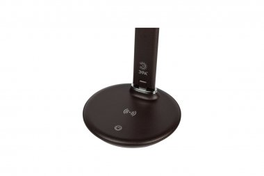 Настольный светильник ЭРА NLED-505-10W-BR со светодиодами (LED) в качестве источников света в дизайне "под кожу". Удобная складная конструкция с сенсорным управлением, возможностью выбора цветовой температуры и плавным диммером для регулировки яркости. На основании светильника расположен встроенный модуль Qi для беспроводной зарядки мобильных устройств. Просто положите телефон, поддерживающий функцию Qi на основание светильника в отмеченной зоне - светильник подзарядит его. Главное преимущество светильника - многофункциональный дисплей с функциями часов, будильника, календаря и термометра.