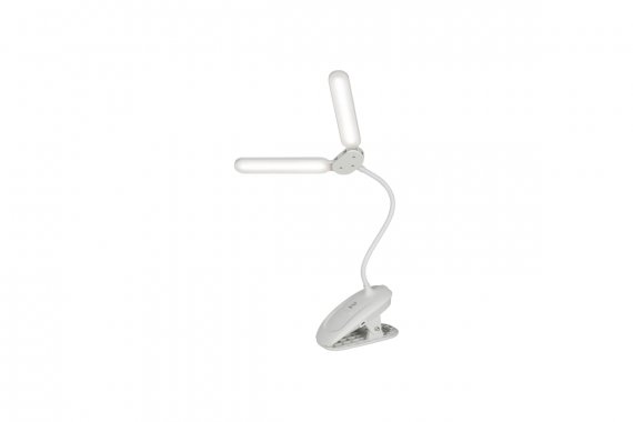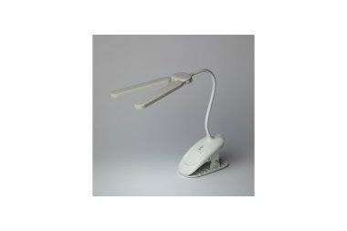 Настольный светильник ЭРА NLED-512-6W-W светодиодный аккумуляторный на прищепке белый Настольный светильник ЭРА NLED-512-6W-W со светодиодами (LED) в качестве источников света, с сенсорным управлением, возможностью выбора цветовой температуры и плавным диммером для регулировки яркости. Модель на прищепке, которая обеспечивает надежную фиксацию на выступающих поверхностях. Встроенный литиевый аккумулятор для автономной работы. Подзарядка от USB. USB-кабель в комплекте. Гибкая стойка и двойной плафон (из двух отдельных частей) позволяют выбирать наиболее комфортное направление света.