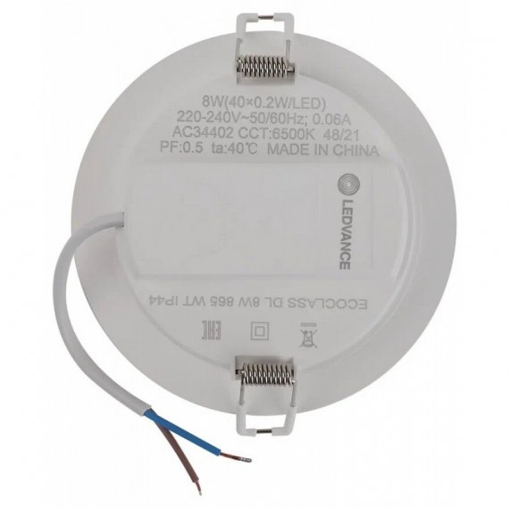 Светильник светодиодный встраиваемый Ledvance ECOCLASS DL 8Вт 6500К 220-240В D100 Светильник светодиодный даунлайт LEDVANCE ECOCLASS 760лм, 8Вт, 6500К, угол пучка 100°. Диапазон рабочих температур -20°…+40°С. Напряжение питания 220-240Вт. Встраиваемый светильник применяется для организации общего и местного освещения в жилых домах и квартирах, а также в офисах и других общественных помещениях. Свет распределяется равномерно благодаря наличию рассеивателя. Изделие встраивается в подвесные потолочные конструкции.Товар сертифицирован.