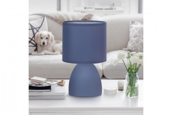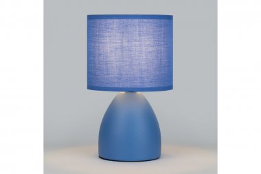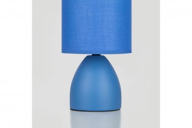Настольная лампа Rivoli Nadine 7047-503 1 * Е14 40 Вт керамика синяя с абажуром Настольная лампа синего цвета с абажуром – Rivoli Nadine (арт. 7047-503) входит в дизайнерскую коллекцию монохромных разноцветных ламп на стол. Коллекцию дополняет настольный светильник коричневый (арт. 7047-501) и светильник настольный оранжевый (арт. 7047-503). Яркие настольные лампы – прекрасное решение для детской комнаты или для любого современного пространства. Rivoli Nadine успешно используются как прикроватный ночник для ребёнка или взрослого. Купить такую настольную лампу удачно также в качестве декоративного светильника на стол в гостиную, на кухню, в кабинет, в прихожую или в загородный дом. Ткань абажура светильника-ночника дизайнерского Rivoli Nadine прочная и износостойкая. Основание выполнено из керамики.