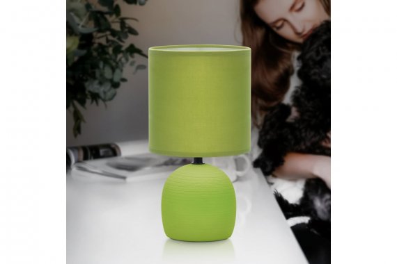 Настольная лампа Rivoli Sheron 7067-503 1 * Е14 40 Вт керамика салатовая с абажуром Настольная лампа Rivoli Sheron салатового цвета (арт. 7067-503) – идеальное решение как ночник в детскую комнату, настольная лампа в подарок ребёнку, ночник прикроватный для девочки, ночник в спальню для мальчика. Яркие и в то же время нежные цвета, в которых выпускаются настольные лампы коллекции Sheron, создают уютный живой интерьер: арт. 7067-501 – розовый ночник, арт. 7067-502 – голубой ночник. Светильники-ночники Rivoli Sheron изготовлены из прочной керамики и износостойкой абажурной ткани, они долгое время будут украшать комнату и создавать практичную дополнительную подсветку. Тканевый абажур хорошо смягчает блики от лампочки (Е14 40 Вт). Купить салатовую лампу настольную стоит в качестве подарка к любому празднику. Салатовый – жизнеутверждающий позитивный цвет.