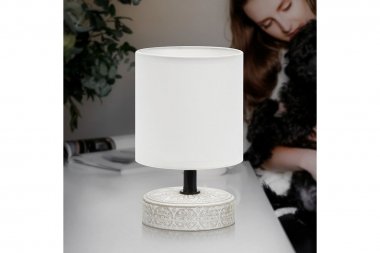 Настольная лампа Rivoli Eleanor 7070-501 1 * Е14 40 Вт керамика бежевая, белая Коллекцию Eleanor итальянского бренда Rivoli представляет настольная лампа в бело-бежевом цвете (арт. 7070-501) и лампа настольная в кофейно-коричневом цвете (арт. 7070-502). Красивые природные оттенки хорошо вписываются в домашний интерьер. Отличительная особенность светильников-ночников Eleanor – невысокое круглое основание из керамики с восточными узорами в виде цветов. Абажур ночника на стол Rivoli Eleanor изготовлен из плотной прочной ткани нежного бежевого цвета. Текстиль смягчает световые блики, делая этот ночник максимально уютным и практичным. Лампочка, подходящая в светильник прикроватный Eleanor – Е14 40 Вт. Устойчивое основание обеспечивает безопасность эксплуатации лампы. Такую лампу можно купить, чтобы поставить на стол, на тумбочку у кровати, в спальню, гостиную, прихожую, кабинет, детскую, загородный дом.