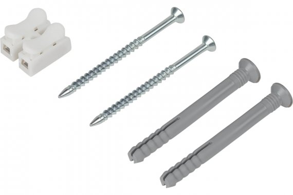 Элементы для крепления - колодка клеммная – 1 шт.; шуруп специальный 4х10 – 2 шт.; дюбель 8х40 – 2 шт.; шуруп 5х60 – 2 шт.