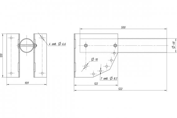 Кронштейн для уличного светильника ЭРА SPP-AC2-0-500-048 с переменным углом 520mm d48mm Кронштейн для уличного (клнсольного) светильника с переменным углом 520*150*120 d48mm
