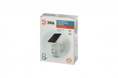 Светильник уличный ЭРА ERAFS012-10 на солнечной батарее настенный Камера с датчиком движения 6 LED Светильник-муляж камеры видеонаблюдения предостережет от проникновения нежелательных гостей и обеспечит качественной вечерне-ночной подсветкой. 6 светодиодов создают яркое дополнительное освещение. Встроенный датчик движения активирует LED-подсветку только при наличии движения вблизи «камеры». Солнечная батарея расположена в верхней части уличного светильника и отлично накапливает энергию в течение светового дня. Одной полной подзарядки хватает на 8 часов непрерывного свечения. Хорошая влагозащита – IP44. Абсолютно новый продукт на рынке фасадных светильников с солнечными панелями.