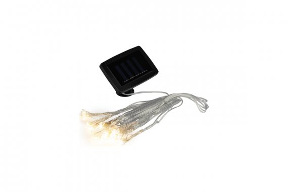 Декоративная садовая гирлянда работает от солнечной батареи, для фиксации которой в комплекте предусмотрен колышек с заострённым концом.