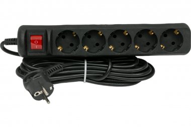 Удлинитель электрический ЭРА UX-5es-5m-B с заземлением с выключателем 5 розеток 5 м ПВС 3x0,75мм2 10А черный Удлинитель электрический Эра UX-5es-5m-B с заземлением, с выключателем, черный, 5 розеток. Провод ПВС, 3x0,75мм2, 5м. Рассчитан на максимальную мощность 10А/2200 Вт. Удлинитель Эра станет Вашим надежным помощником, если Ваши любимые электроприборы находятся далеко от розеток. Провод в удлинителях Эра сделан из 100% меди, что делает его абсолютно пожаробезопасным. Корпус выполнен из ударопрочного и негорючего пластика (полипропилен). Вилка обеспечена кольцом для удобного извлечения ее из розетки. Модель удлинителя на 10А позволяет подключить бытовые приборы общей нагрузкой до 2200Вт. Дизайн удлинителя разработан в России командой Эра Style.