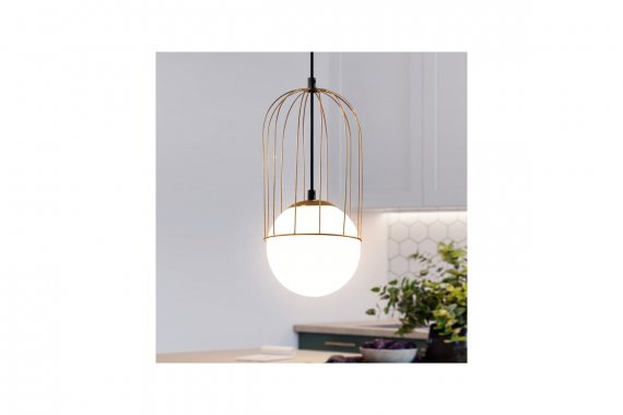 Светильник подвесной (подвес) Rivoli Bethany 4107-201 1 * Е14 40 Вт дизайн потолочный шар Rivoli Bethany (арт. 4107-201) – оригинальный дизайнерский светильник на тросе подвесной под лампу Е14 40 Вт. Круглый плафон светильника-подвеса из матового белого стекла декорирован эффектным решётчатым колпаком золотого цвета. Дизайнерская конструкция светильника имеет ассоциативную параллель с красивой клеткой для певчих птиц. Подвесные светильники на тросах Rivoli Bethany помогут оформить пространство в стиле кантри, лофт, ретро, винтаж, эклектика, восточный, скандинавский, модерн. Такие светильники подвесные на потолок – по-настоящему универсальное стильное решение для запоминающегося интерьера. Длина троса регулируется при монтаже светильника подвесного на потолок, что является преимуществом данной подвесной люстры.