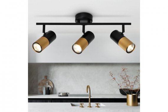Светильник настенно-потолочный спот Rivoli Belladonna 7073-703 3 х GU10 15 Вт поворотный Настенно-потолочные светильники Rivoli Belladonna – это дизайнерская коллекция итальянского бренда, представленная моделями под разное количество ламп: арт. 7073-701 – спот под 1 лампу, арт. 7073-702 – спот под 2 лампы, арт. 7073-703 – спот под 3 лампы, арт. 7073-704 – спот под 4 лампы. Все настенно-потолочные споты коллекции поворотные, позволяют регулировать направление каждой лампы. Лампы для спотов Belladonna - GU10 15 Вт. Светильник настенный с тремя поворотными плафонами окрашен стойким гальваническим способом в 2 трендовых цвета – чёрный матовый и золото. Такой спот настенный не только обеспечивает качественную подсветку пространства, но и сам по себе является украшением стены и эффектной деталью интерьера.