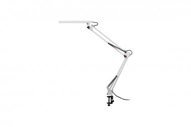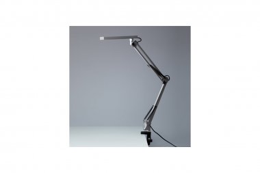 Светильник со светодиодами (LED) в качестве источников света. Модель на струбцине. Выключатель на проводе. Изменяемая цветовая температура: 3000К/4500К/6000К. Высота плафона регулируется двухсекционной сгибающейся стойкой, направление света регулируется поворотом плафона в любом направлении.