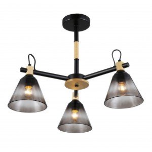 Люстра Rivoli Elmira 9117-303 3 * Е27 40 Вт модерн дубликат Elmira - дизайнерские люстры из металла, дерева и стекла. Выполнены в стиле лофт-кантри и отлично подходят для популярных интерьеров. Созданы итальянским брендом Rivoli. Стеклянные тонированные плафоны люстры - одна из изюминок коллекции, в которую входят люстры потолочные под 3 лампы (арт. 9117-303) и под 5 ламп (арт. 9117-305). Люстры Rivoli Elmira будут удачны для интерьеров в стиле лофт, кантри, модерн, подойдут эти люстры в гостиную в скандинавском стиле. В каркасных люстрах Rivoli Elmira немало интересных деталей. Элементы светлого дерева в контрасте с черным матовым металлом создают неповторимый внешний вид люстры. Арматура люстры проста и минималистична. Плафоны имеют глубокую сложную тонировку, есть эффектный декоративный вывод провода над плафонами. Для люстры на потолок Elmira подойдут лампы распространенного цоколя Е27, мощность - 40 Вт. Данная люстра 3-рожковая качественно осветит площадь 9 м?. Отличный вариант люстры на кухню, спешите купить!