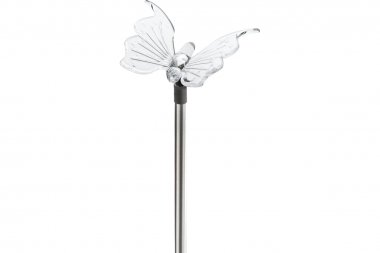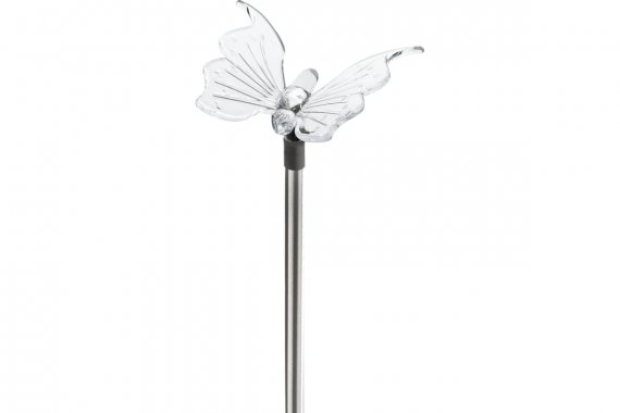 Светильник популярной модели на длинной стальной стойке, светящийся элемент в виде прозрачной фигурки. Две разные насадки: Бабочка + Стрекоза. Белый светодиод.