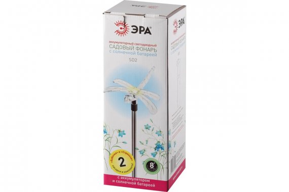 Светильник уличный ЭРА SD2 на солнечных батареях садовый Бабочка и Стрекоза Светильник популярной модели на длинной стальной стойке, светящийся элемент в виде прозрачной фигурки. Две разные насадки: Бабочка + Стрекоза. Белый светодиод.