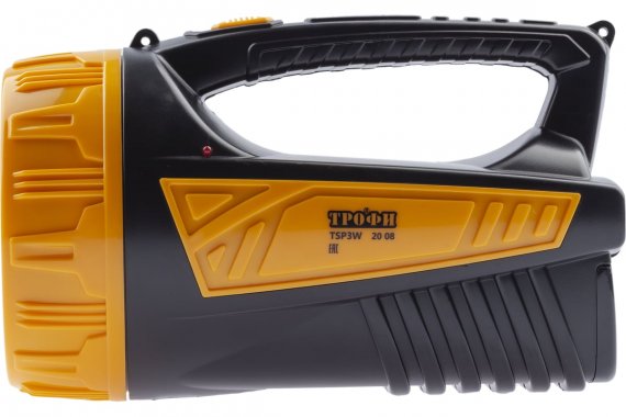 Светодиодный фонарь Трофи TSP3W прожекторный аккумуляторный со встроенной зарядкой Светодиодный фонарь прожектор от компании Трофи станет Вашим незаменимым помощником в работе, ремонте или путешествии. Одним из главных плюсов фонаря является прочный корпус из пластика. Он устойчив к падениям, тряскам, неприхотлив в уходе. 3W белый светодиод освещает пространство на расстоянии до 220 м. Повышенный световой поток с холодным белым свечением равен 140/220 Лм/м. Фонарь прожектор оснащен встроенным аккумулятором, время работы которого без подзарядки составляет 9 часов. Данный аккумуляторный фонарь мощностью 3 Вт идеальный вариант для тех, кому свет необходим всегда и везде. Модель оснащена удобной рифленой рукояткой. Световой индикатор всегда будет напоминать о необходимости подзарядки.Яркий огненный дизайн придает модели неповторимый стиль. Многофункциональный фонарь от бренда Трофи это высокое качество по оптимальной цене!