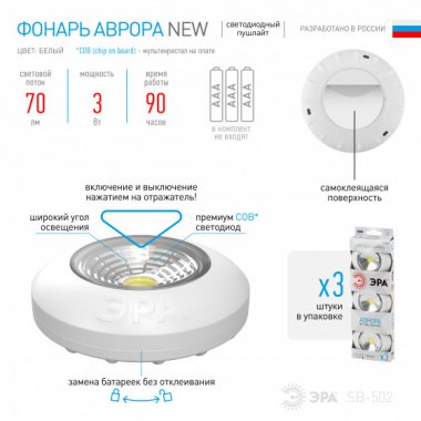 Эра Светодиодный самоклеящийся фонарь-подсветка Б0029182