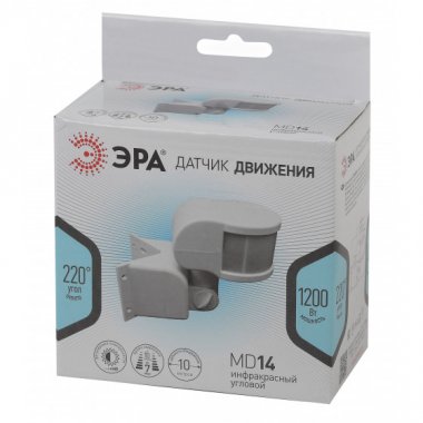 MD 014 Датчик движения ЭРА белый, макс. нагрузка 1100Вт, угол обзора 270град., дальность 12м, IP44 (